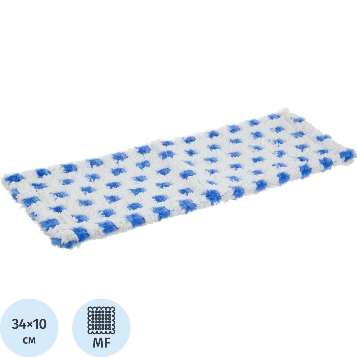 Насадка МОП для швабры-флаундера (плоской) Luscan микрофибра 34×10 см белая/синяя<br><br>Насадка МОП из микрофибры предназначена для плоской швабры-флаундера и используется для влажной уборки. Волокна микрофибры глубоко проникают в структуру покрытия, обеспечивая эффективное удаление ежедневных загрязнений. Материал равномерно распределяет влагу и легко скользит по поверхности, не оставляя разводов. Насадка подходит для уборки любых твёрдых покрытий и может стираться в машинке при температуре до 40 °C без использования агрессивных средств.<br><br>Размер изделия составляет 34×10 см, вес — 55 г. Цветовое исполнение бело-синее. Крепление осуществляется с помощью кнопок.