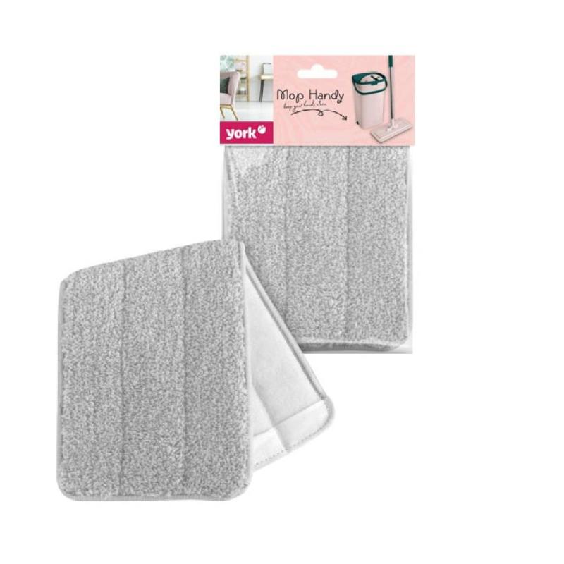 Насадка МОП для швабры-флаундера (плоской) York Хэнди микрофибра 32×12 см серая<br><br>Насадка МОП York «Хэнди» из микрофибры размером 32×12 см предназначена для влажной уборки различных поверхностей. Мягкая ткань из 80% полиэстера и 20% полиамида бережно очищает полы, не оставляя разводов, и эффективно справляется даже без использования моющих средств. Насадка впитывает воду в пять раз больше собственного веса и легко выполаскивается после применения.<br><br>Крепление осуществляется с помощью липучки и кармана с одной стороны, что делает установку и замену удобной и быстрой. Изделие весит 32 г, цвет — серый. МОП отличается долговечностью, простотой в уходе и подходит для регулярной уборки дома или в помещениях с небольшой нагрузкой.