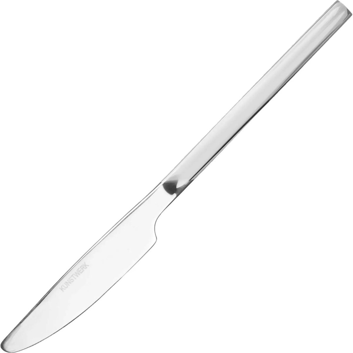 Нож столовый Kunstwerk изготовлен из нержавеющей стали и подходит для ежедневного использования. Длина 220 мм обеспечивает удобный баланс и комфорт при нарезке. Прочный материал устойчив к коррозии и сохраняет аккуратный внешний вид при регулярном уходе. Нож можно мыть в посудомоечной машине. В упаковке 12 штук.<br><br>— перед первым использованием требуется тщательно промыть изделия;<br>— хранить изделия в чистом, сухом виде;<br>— не рекомендуется использовать губки с абразивным слоем;<br>— не рекомендуется промывка изделий в посудомоечной машине с использованием моющих средств, в состав которых входит активный кислород.<br><br>Внимание! Товар поставляется в транспортном коробе.