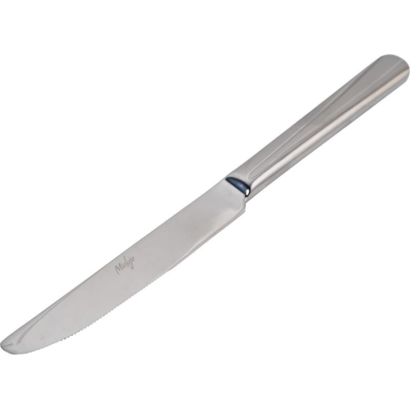 Нож столовый Mielaje (211) 23.6 см нержавеющая сталь<br><br>Подходит для использования в любых кафе, ресторанах, барах и других заведениях общепита, а также станет прекрасным дополнением в сервировке любого стола. <br>Столовые приборы изготовлены из стали 430, являются приборами высокого класса. Ослепительный блеск, функциональность, надёжность, изысканная элегантность и утончённость стиля — всё это ярко отличает столовые приборы фирмы Mielaje. В нержавеющей стали 430 содержится никеля (0,85%), не более 0,8% углерода и не менее 50% железа. Хром связывает кислород на поверхности продукта, образуя плёнку, защищающую железо от окисления (ржавчины). Никель также повышает коррозионную стойкость нержавеющей стали. Следовательно, чем выше содержание никеля, более устойчива нержавеющая сталь к коррозии. Сталь марки 430 — это сталь высокого качества (сталь, легированная хромом, никелем и марганцем, сохраняющая при охлаждении до комнатной и ниже структуру твёрдого расплавленного раствора — аустенита) с низким содержанием углерода. Данная сталь долго сохраняет свой первоначальный внешний вид даже при интенсивном использовании и регулярном мытье, благодаря высокому качеству материала используемого для их изготовления. <br>Для изготовления столовых приборов мы используем материалы исключительно безупречного качества и самые современные технологии их обработки. Отменный блеск, наших столовых приборов, является результатом многоуровневого процесса технологической полировки. Благодаря этому приборы максимально долго остаются гладкими и блестящими. <br>Приобретая столовые приборы Mielaje, будьте уверены в долговечности изделий и в его непревзойдённом дизайне. <br>Длина прибора: 23.6 см. <br>Толщина прибора: 6 мм. <br>Можно мыть в посудомоечной машине. <br>Лезвие закалённое.