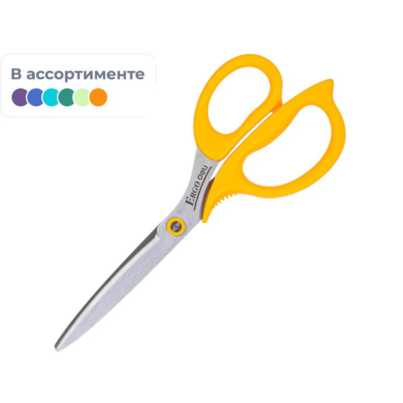 Ножницы канцелярские бренда Deli универсального назначения — один из необходимых помощников как дома, так и в офисе при работе с бумагой и другими материалами. Лезвия изготовлены из нержавеющей стали, с возможностью двухсторонней заточки. Ручки эргономичной формы изготовлены из пластика. Длина лезвий: 95 мм. Длина ножниц: 210 мм. Форма лезвий: тупоконечные. Вид колец: разные. <br>Товар поставляется в нескольких вариантах цвета (без возможности выбора).