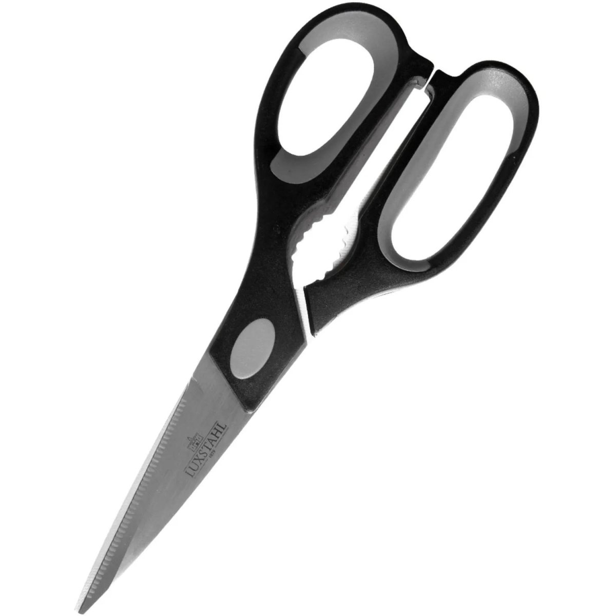 Ножницы поварские Luxstahl Master 215 мм (кт1875).<br>Универсальные ножницы поварские Master бренда Luxstahl — незаменимая вещь на любой кухне. <br>Предназначены для быстрой и удобной разделки дичи, домашней птицы, мяса, рыбы. С их помощью Вы сможете легко вскрыть упаковку из картона или пленки. <br>Ножницы выполнены из высококачественной легированной нержавеющей стали 3Cr13. Повышенное содержание углерода в ее составе придает лезвию оптимальную твердость (51-55 HRC по шкале Роквелла). Ножницы, выполненные из такой стали, великолепно держат заточку, идеально подходят для интенсивного использования и сохраняют отличный внешний вид лезвий в течение всего срока службы, отделка ручек из пластмассы (полипропилен). После использования следует промыть с использованием моющих средств.<br>Эргономичные ручки удобны и надежно фиксируется в руке. Это позволит справится с большим объемом работы на кухне, сэкономив Вам время и силы. Вставки на ручках выполнены их полипропилена. <br>Ножницы оснащены приспособлением для колки орехов. <br>Ножницы Luxstahl изготовлены в соответствии с ГОСТ ISO 8442-1-2013. <br><br>— перед первым использованием требуется тщательно промыть изделия; <br>— хранить изделия в чистом, сухом виде; <br>— не рекомендуется использовать губки с абразивным слоем; <br>— не рекомендуется промывка изделий в посудомоечной машине с использованием моющих средств, в состав которых входит активный кислород. <br><br>Посуда для профессионального использования создана для ресторанов, кафе и других заведений общественного питания. Прочная, термостойкая и удобная — оптимальное решение для интенсивной работы.