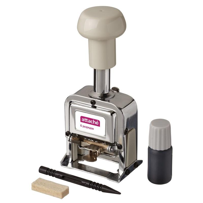 Нумератор автоматический Attache 6-и разрядный, размер шрифта 4,8 мм. Металлический корпус. При нажатии на ручку нумератора на бумаге появляется оттиск с номером. При повторном нажатии номер автоматически увеличивается на единицу. Комплектация: штемпельная подушка, черная краска на масляной основе 5 мл. Нумератор может быть зафиксирован на 2,3,4,6 и 12 нажатий прежде чем он провернется на 1 цифру далее. Возможно обнулять и откатывать назад нумерацию. Сменная подушка артикул 892698. Внимание! Возможно использование красок только на спиртовой и масляных основах. Обычные штемпельные краски на металле скатываются, и оттиск получается размазанным. Краски на масляных и спиртовых основах пропитывают тонкую бумагу насквозь.