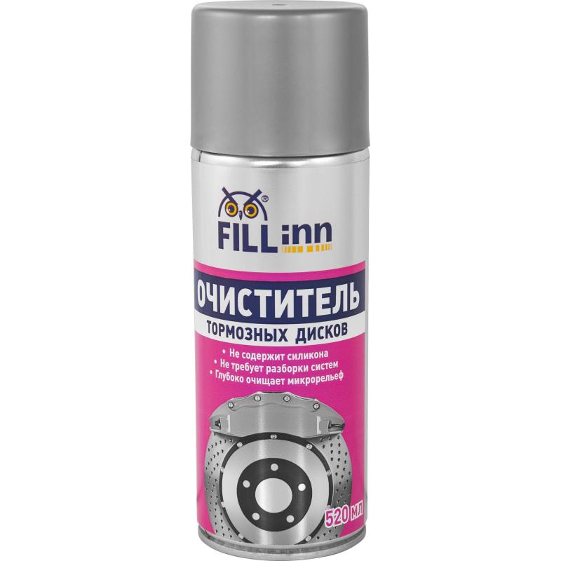 Очиститель тормозных дисков Fill Inn FL018. Быстро и эффективно очищает тормозные колодки, барабаны, диски, цилиндры, компоненты ABS и другие детали тормозных систем любых типов без демонтажа и разборки узлов, а также элементы сцепления. Удаляет тормозную пыль, нагар, маслянистую дорожную грязь, в том числе, застарелую. Устраняет скрип, повышает эффективность торможения, снижает интенсивность изнашивания, а также нагрев деталей тормозных механизмов. Быстро испаряется, не оставляет следов.<BR>Область применения:<BR>Может использоваться в качестве универсального обезжиривающего средства при ремонте двигателей и других агрегатов, а также для очистки разъемов электропроводки.<BR>Преимущества:<BR>Не содержит силикона;<br>Не требует разборки систем;<br>Глубоко очищает микрорельеф.