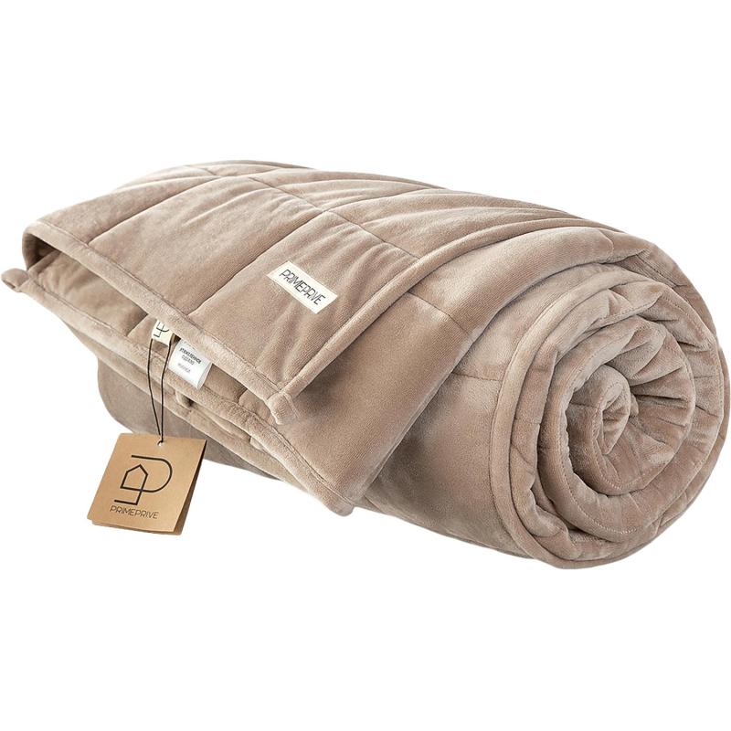 Утяжелённое одеяло «Минки» имеет чехол из 100% велюра и наполнитель из стеклянных гранул.<br>Одеяло содержит утяжелённые гранулы, оказывающие сильное, но мягкое давление на всё тело в равной степени, способствуя отдыху и расслаблению. Гипоаллергенные стеклянные гранулы делают одеяло более тяжёлым и основательным. Они изготовлены из специального сверхпрочного и экологически чистого стекла. Чехол изготовлен из 100% велюра — прочного, износостойкого материала. Велюр очень плотный, но при этом нежный и приятный на ощупь. Изделие из этой ткани не мнётся и не садится, сохраняя форму.<br><br>Стирать одеяло рекомендуется на щадящем режиме при температуре не более 40 °C и со слабым отжимом. Сушить его лучше всего разложенным на горизонтальной поверхности или повесив вертикально.<br><br>Поставляется в стильной упаковке, удобной для хранения изделия дома.<br><br>Внимание! Перед первым использованием обязательна стирка!