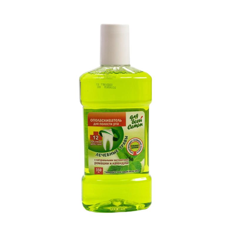 Ополаскиватель для полости рта Ренессанс Косметик Лечебные травы 350 мл<br><br>Ополаскиватель для полости рта придаст вашему дыханию аромат, как после чистки зубов. Способ применения: колпачок наполните ополаскивателем, тщательно прополощите полость рта в течение одной минуты.<br>Рекомендуется использовать ополаскиватель после каждой чистки зубов.<br>Состав: Aqua, Glycerin, Propylene Glycol, PEG-40 Hydrogenated Castor Oil, Parfum, Sodium Methylparaben, Citric Acid, Sodium Lauryl Sulfate, Sodium Hydroxide, Chamomilla Recutita (Matricaria) Extract, Calendula Officinalis Extract, Sodium Propylparaben, Sodium Monofluorophosphate, Sodium Saccharin, CI 19140, CI 42090, CI 15985.<br>Объём: 350 мл.