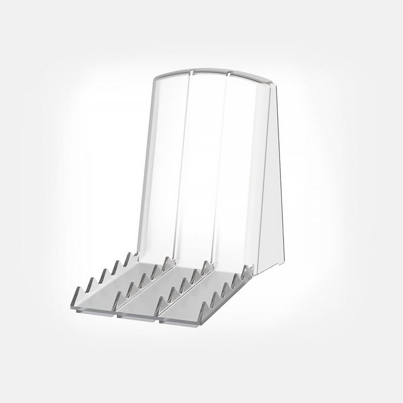 Пластиковая опора для выкладки плоских упаковок. Подходит для всех категорий товара, где существует необходимость презентовать продукт 'лицом' к покупателю. Конструкция подставок также актуальна и для предшественников электронных книг — их бумажных аналогов.<BR>Размер основания: 90×105 мм, высота задней<BR>стенки 140 мм.<BR><BR>В упаковке 10 штук.
