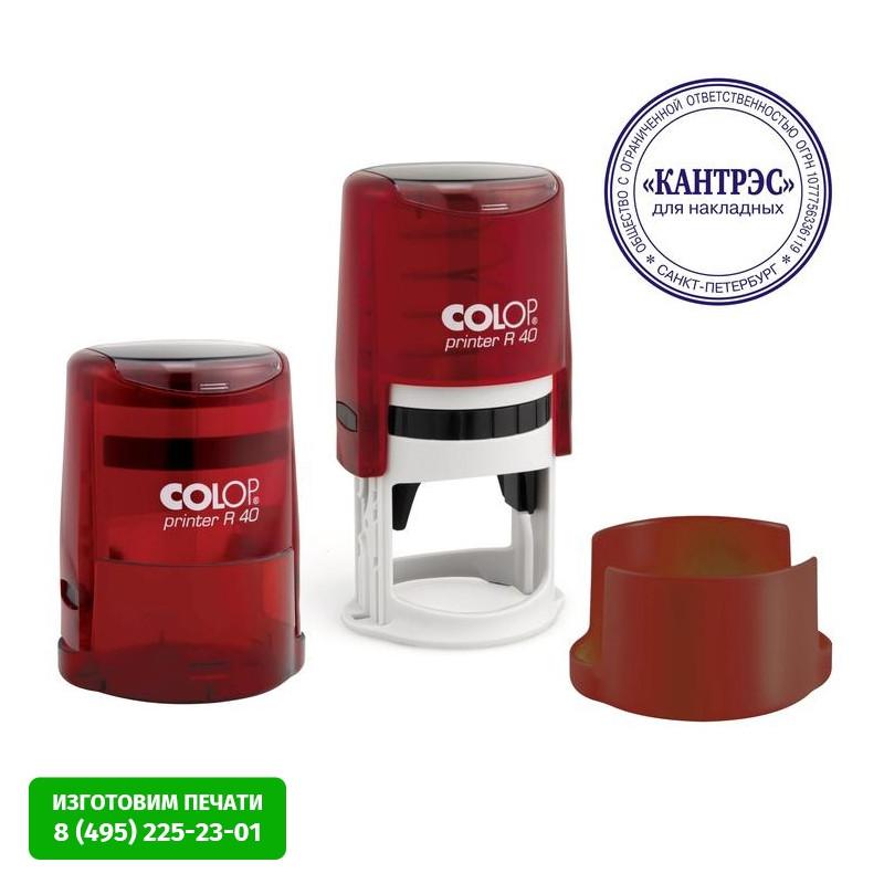 Оснастка для печати круглая Colop Printer R40. Надежный пластиковый корпус красного цвета с оттенком ’Рубин’ с автоматическим окрашиванием текста. Диаметр оттиска — до 41,5 мм. Нижняя крышка позволяет блокировать корпус в сложенном компактном виде, защищает клише. Используется для основных или дополнительных печатей организации. В комплекте: оснастка, нижняя крышка, синяя сменная подушка E/R40, демпферный слой для крепления клише, наклеен на текстовую площадку. Клише заказывается отдельно.<br>Внимание! Все сменные штемпельные подушки, которыми комплектуется продукция Colop, заправлены краской Noris (Германия) на водной основе с добавлением глицерина и предназначены для проставления оттисков на бумагу и пористые поверхности. При необходимости проставления оттисков спиртсодержащей краской при помощи автоматической оснастки, стандартную подушку, идущую в комплекте, необходимо заменить на специальную совместимую со спиртосодержащими красками, во избежание затвердевания подушечного материала. Заказывается индивидуально.
