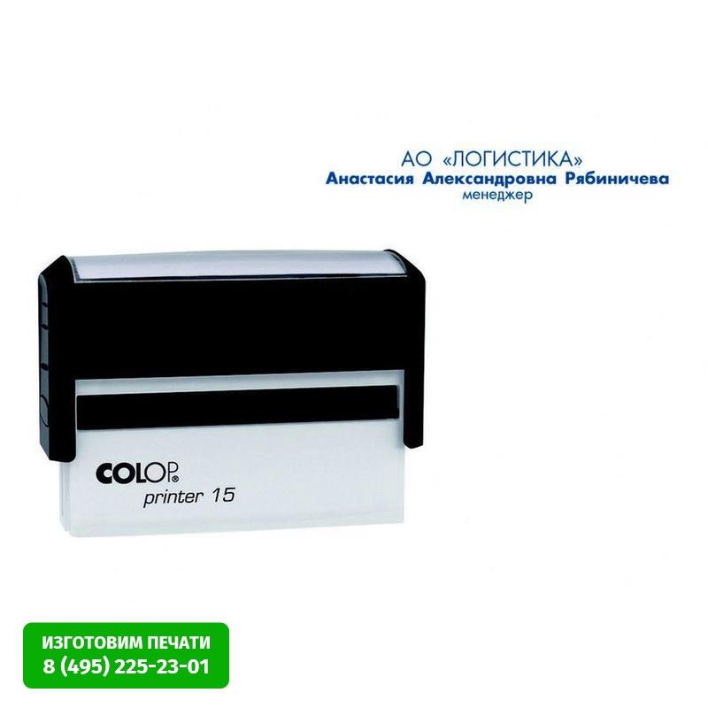 <b>Для заказа печати или штампа с клише Вашего дизайна отправьте запрос на электронную почту reklama@komus.net или позвоните по телефону (495)685-95-10. </b></p> Надежный пластиковый корпус классического дизайна с автоматическим окрашиванием текста. Текстовые пластины прямоугольной формы под изготовление клише для информационных, маркировочных, адресных штампов. В комплекте: оснастка, сменная подушка синего цвета E/15 (арт.73906), демпферный слой (двусторонний скотч). Размер — 10×69мм.<br><br>Внимание! Все сменные штемпельные подушки, которыми комплектуется продукция Colop, заправлены краской Noris (Германия) на водной основе с добавлением глицерина и предназначены для проставления оттисков на бумагу и пористые поверхности. При необходимости проставления оттисков спиртсодержащей краской при помощи автоматической оснастки, стандартную подушку, идущую в комплекте, необходимо заменить на специальную совместимую со спиртосодержащими красками, во избежание затвердевания подушечного материала. Заказывается индивидуально.