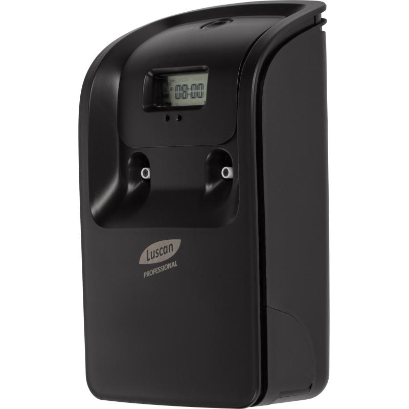 Освежитель воздуха автоматический (диспенсер) Luscan Professional Etalon чёрный 250 мл (двойной) <br><br>Автоматический диспенсер для освежителя Luscan Professional предназначен для аэрозольных освежителей и подходит для всей линейки сменных баллонов Luscan. Диспенсер идеально впишется в любой интерьер туалетных комнат. В диспенсере можно одновременно использовать 1 или 2 сменных баллона, которые могут работать вместе или попеременно. Для работы диспенсера нужны 2 батарейки АА. Обращаем ваше внимание, что батарейки не идут в комплекте. Диспенсер рассчитан на 3200 распылений и единовременную ароматизацию помещения площадью до 120 м. Автоматически выставляется интервал впрыска: 7, 5, 15 или 30 минут. Освежитель может работать как в круглосуточном режиме, так и в 12 — часовом режиме. Есть замок. Срок службы одного баллончика — 3 месяца. Размер диспенсера: 88,5×145,5×252,5 мм. Материал: ABS-пластик, полипропилен. Цвет: чёрный. Вид крепления: настенное. Страна-изготовитель: Китай. Гарантийный срок: 1 год.