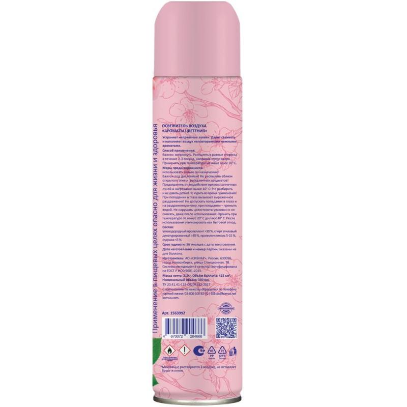 Освежитель воздуха Luscan Ароматы цветения 330 мл сухое распыление<br><br>Назначение/особенности: освежитель для воздуха Luscan нейтрализует запахи и дарит нежный аромат цветения. Подходит для дома и любых общественных мест. Формула сухого распыления экономична в использовании и не оставляет следов на поверхности.<br>Способ применения: баллон встряхнуть. Распылять в разные стороны в течение 2-3 секунд, направив струю вверх. Применять при температуре не ниже плюс 10°C.<br>Меры предосторожности: использовать только по назначению! Баллон под давлением! Не распылять вблизи открытого огня и раскалённых предметов! Предохранять от воздействия прямых солнечных лучей и нагревания выше 40°C! Не разбирать и не давать детям! Не курить во время применения! При попадании в глаза вызывает выраженное раздражение! Не допускать попадания в глаза и на раздражённую кожу, при попадании — промыть водой. Не нарушать целостности упаковки и не сжигать, даже после использования!<br>Состав: углеводородный пропеллент >30%, спирт этиловый денатурированный >30%, пропиленгликоль 5–15%, отдушка <5%.<br>Условия хранения: хранить при температуре от минус 20°С до плюс 40°С. После использования утилизировать как бытовой отход.<br>Срок годности: 36 месяцев с даты изготовления (дату изготовления см. на упаковке).