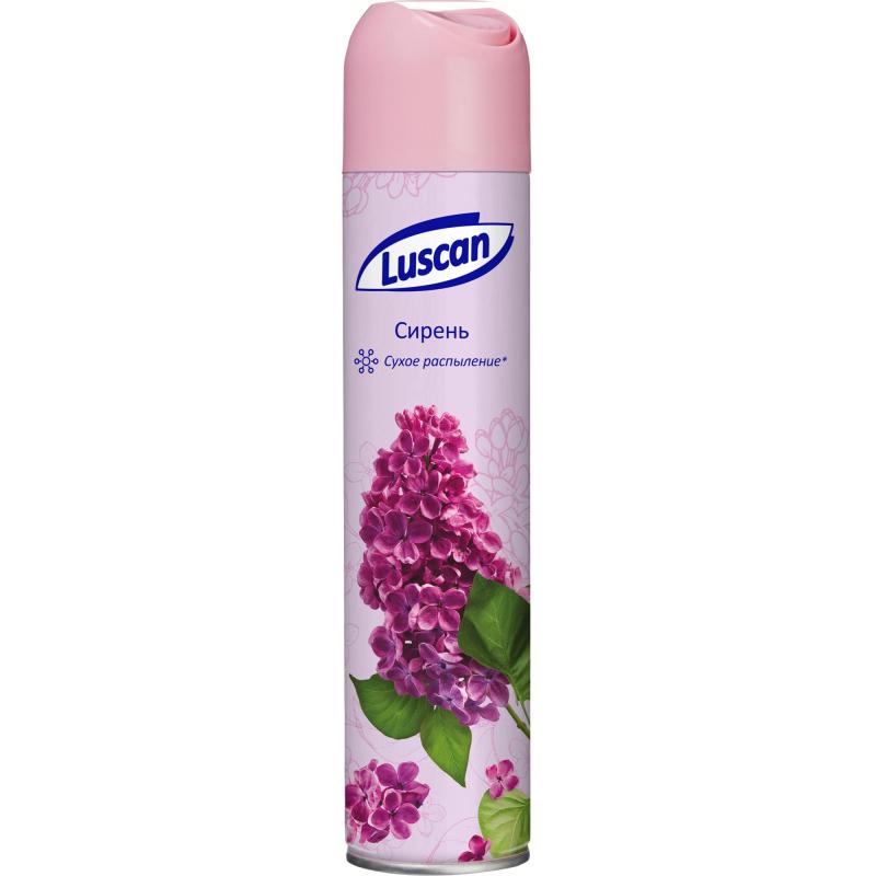 Освежитель воздуха Luscan Сирень 330 мл сухое распыление<br><br>Назначение/особенности: освежитель для воздуха Luscan устраняет неприятные запахи. Дарит свежесть и наполняет воздух неповторимыми нежными ароматами сирени. Подходит для дома и любых общественных мест. Формула сухого распыления экономична в использовании и не оставляет следов на поверхности.<br>Способ применения: баллон встряхнуть. Распылять в разные стороны в течение 2–3 секунд, направив струю вверх. Применять при температуре не ниже плюс 10 °C.<br>Меры предосторожности: использовать только по назначению! Баллон под давлением! Не распылять вблизи открытого огня и раскалённых предметов! Предохранять от воздействия прямых солнечных лучей и нагревания выше 40 °C! Не разбирать и не давать детям! Не курить во время применения! При попадании в глаза вызывает выраженное раздражение! Не допускать попадания в глаза и на раздражённую кожу, при попадании — промыть водой. Не нарушать целостности упаковки и не сжигать, даже после использования!<br>Состав: углеводородный пропеллент >30%, спирт этиловый денатурированный >30%, пропиленгликоль 5–15%, отдушка <5%, гексилциннамаль, бутилфенил метилпропиональ, коричный спирт.<br>Условия хранения: хранить при температуре от минус 20 °С до плюс 40 °С. После использования утилизировать как бытовой отход.<br>Срок годности: 36 месяцев с даты изготовления (дату изготовления см. на упаковке).