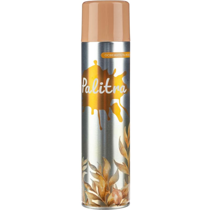 Освежитель воздуха Palitra Антитабак 300 мл<br><br><b>Назначение/особенности:</b> аэрозольный освежитель воздуха устраняет неприятные запахи и освежает воздух.<br><b>Способ применения:</b> баллон встряхнуть 2-5 секунд. Распылять в разные стороны в течение 2-3 секунды, направив струю вверх. При необходимости более длительного распыления упаковку периодически встряхивать.<br><b>Меры предосторожности:</b> использовать только по назначению! Баллон под давлением! Предохранять от воздействия прямых солнечных лучей и нагревания выше 40°C! Не распылять вблизи открытого огня и раскалённых предметов! Беречь от детей! Не нарушать целостность упаковки и не сжигать даже после использования! Не курить во время применения! Не допускать попадания в глаза! Использовать при температуре не ниже плюс 10°C. Хранить при температуре от минус 20 до плюс 40°С. После использования утилизировать как бытовой отход. ТУ 20.41.41-122-00204292-2017<br><b>Состав:</b> вода, углеводородный пропеллент 15–30%, отдушка < 5%, НПАВ < 5%, консерванты< 5%, пропиленгликоль < 5%.<br><b>Условия хранения:</b> хранить в недоступном для детей месте при температуре от −20°С до 40°С. После использования утилизировать как бытовой отход.<br><b>Срок годности:</b> 36 месяцев с даты изготовления (дату изготовления см. на упаковке).