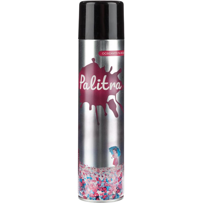 Освежитель воздуха Palitra После дождя 300 мл<br><br><b>Назначение/особенности:</b> нейтрализует неприятные запахи и наполняет квартиру натуральным ароматом свежести после дождя.<br><b>Способ применения:</b> баллон встряхнуть 2-5 секунд. Распылять в разные стороны в течение 2-3 секунды, направив струю вверх. При необходимости более длительного распыления упаковку периодически встряхивать.<br><b>Меры предосторожности:</b> использовать только по назначению! Баллон под давлением! Предохранять от воздействия прямых солнечных лучей и нагревания выше 40°C! Не распылять вблизи открытого огня и раскалённых предметов! Беречь от детей! Не нарушать целостность упаковки и не сжигать даже после использования! Не курить во время применения! Не допускать попадания в глаза! Использовать при температуре не ниже плюс 10°C. Хранить при температуре от минус 20 до плюс 40°С. После использования утилизировать как бытовой отход. ТУ 20.41.41-122-00204292-2017<br><b>Состав:</b> вода, углеводородный пропеллент 15–30%, отдушка < 5%, НПАВ < 5%, консерванты< 5%, пропиленгликоль < 5%.<br><b>Условия хранения:</b> хранить в недоступном для детей месте при температуре от −20°С до 40°С. После использования утилизировать как бытовой отход.<br><b>Срок годности:</b> 36 месяцев с даты изготовления (дату изготовления см. на упаковке).