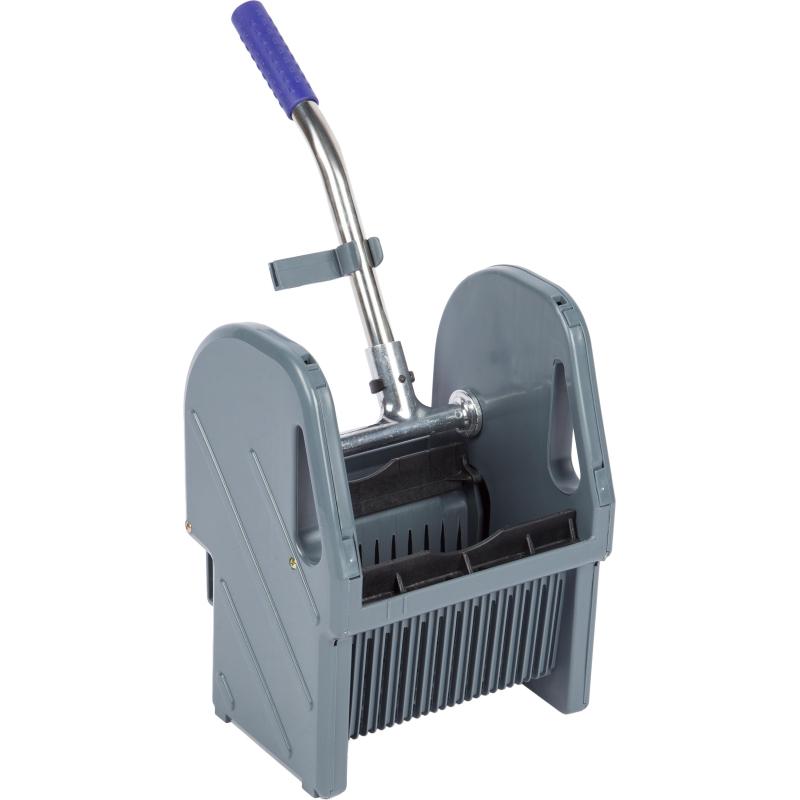 Отжим для уборочных тележек позволяет выжимать насадку-МОП оставляя руки сухими. Отжим подходит для плоских МОПов с креплением «ухо» и веревочных МОПов. Отжим устанавливается на уборочную тележку с помощью удобных держателей. Размер 45×26×35 см. Вес 2000 г.