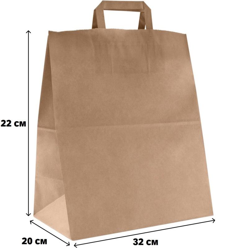 Крафт-пакет коричневый с плоскими ручками 320×200×220 мм 70 г/кв.м био (300 штук в упаковке)<br><br>Бумажные крафт-пакеты с плоскими ручками идеально подойдут для пищевых продуктов и других бытовых товаров. Благодаря плотной бумаге, они обладают высокой прочностью и отлично держат форму.