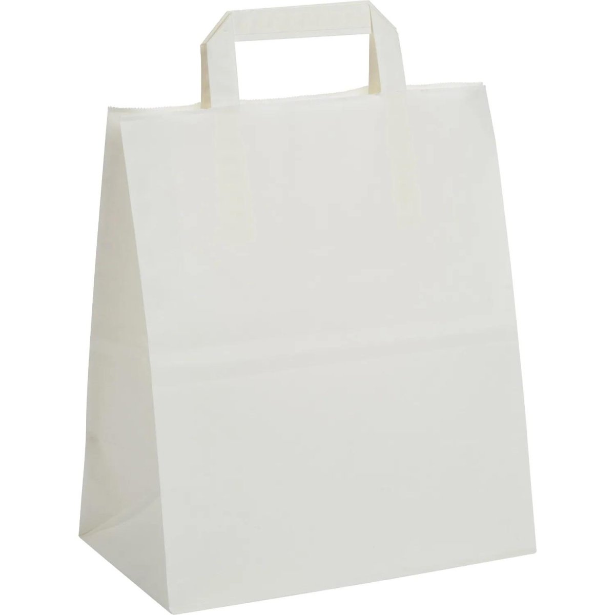 Пакет бумажный с плоскими ручками — отличное решение для услуги с собой/навынос или на доставку. Гигиеничный и безопасный продукт. Производится по международным стандартам качества. Благодаря плотной бумаге обладает высокой прочностью и отлично держит форму. Пригоден для вторичной переработки.