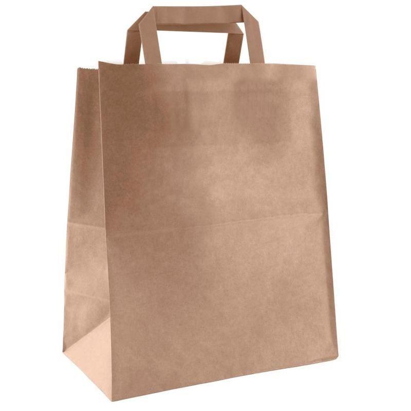 <p>Крафт пакет бумажный с плоскими ручками — отличное решение для услуги с собой/навынос или на доставку. Гигиеничный и безопасный продукт. Производится по международным стандартам качества. Благодаря плотной бумаге обладают высокой прочностью и отлично держат форму. Выдерживает вес до 5 кг. Пригоден для вторичной переработки.</p>