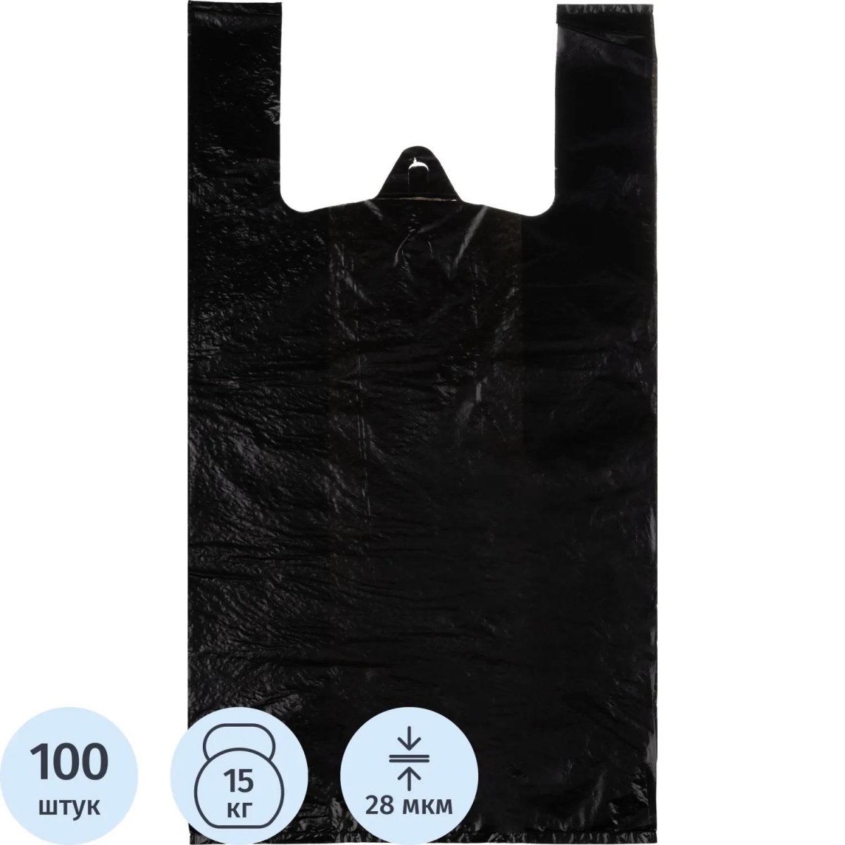 Пакет-майка Комус 30+18×56 см 28 мкм чёрный (100 штук в упаковке)<br><br>Не содержит токсических веществ. Длина каждого пакета с ручками — 56 см, ширина — 30 см, ширина бокового фальца — 18 см. В упаковке — 100 пакетов чёрного цвета. Сфера применения: для упаковки, хранения и транспортировки вещей, предметов, продуктов питания; для совершения покупок с супермаркетах, магазинах, у частных продавцов.
