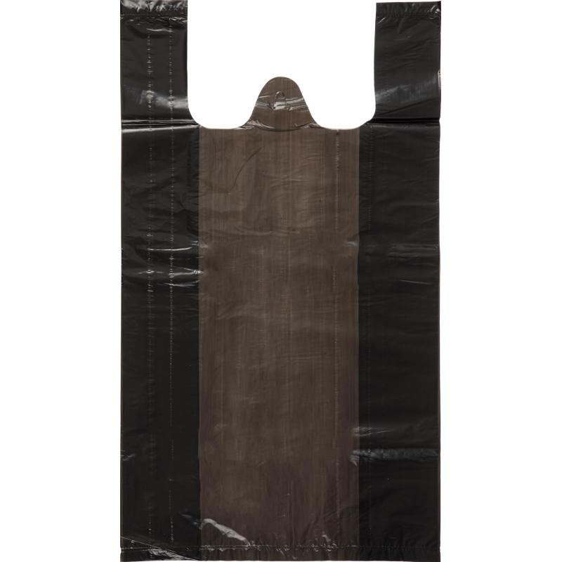 Пакет-майка 40+18×70 см 30 мкм чёрный (50 штук в упаковке)<br><br>Пакет-майка — это полимерное изделие с ручками по внешнему виду похожее на майку, применяемое для упаковки, транспортировки, хранения товаров, предметов и продуктов, изготовленное на основе высокоплотного первичного полиэтилена низкого давления (ПНД).<br><br>Пакеты могут использоваться:<br>• для упаковки пищевой продукции, продукции промышленного и бытового назначения.<br>• для защиты продукции от загрязнения, воздействия влаги, повреждения во время транспортировки и хранения.<br><br>Имеют удобные ручки, выдерживают вес до 25 кг, при условии, что внутри не острые предметы. При сверх больших нагрузках возможны растяжение и разрыв пакета.