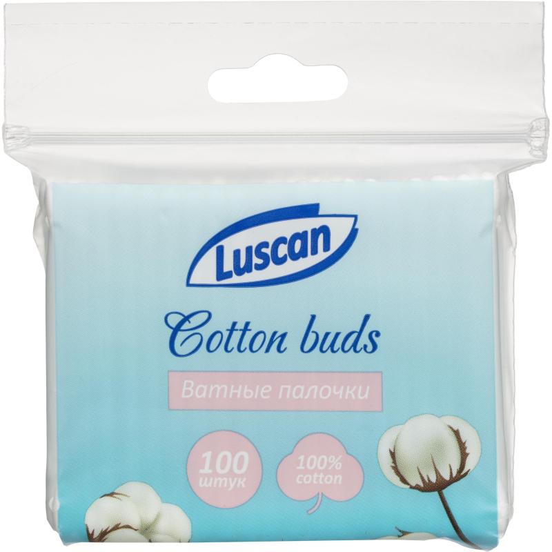 Палочки ватные Luscan 100 штук zip-пакет<br><br>Ватные палочки Luscan предназначены для косметических и гигиенических целей. Палочки не оставляют ворсинок после применения. Не рекомендуется применять на внутренних частях носа, уха и глаза. Zip-пакет удобен в использовании, благодаря zip-молнии ватные палочки непроницаемы в закрытом виде.<br>Состав: 100% хлопок, полипропилен (стик).<br>Номинальное количество: 100 штук.