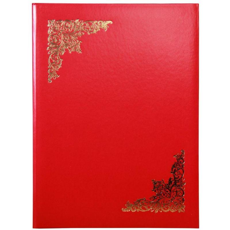Папка адресная Attache Economy Орнамент А4 красная. Адресная папка формата А4 выполнена из высококачественного бумвинила красного цвета (слой ПВХ на бумажной основе). На обложку с помощью тиснения золотой фольгой нанесен орнамент (виньетка). Папка предназначена для подачи документов на подпись и для проведения торжественных церемоний, для вручения наград, благодарностей и почетных грамот, для оформления поздравлений и приветственных речей. Благодаря дизайну она подойдет для использования в государственных учреждениях, ведомствах и офисах. Лента для фиксации бумаг не предусмотрена. На папку можно нанести логотип.