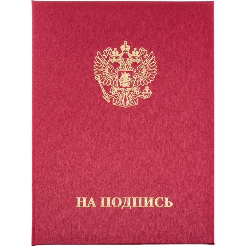 Папка адресная ТВЛ На подпись А4 танго бордовая. Предназначена для подачи документов на подпись руководителю. Адресная папка формата А4. Изготовлена из переплетного материала танго бордового цвета (слой ПВХ на бумажной основе). Внутренние вклейки — из балакрона (ПВХ с имитацией кожи). Надпись и герб выполнены методом тиснения золотой фольгой. Внутри предусмотрен фиксирующий ремешок. Вмещает 10-15 листов плотностью 80 г/кв. м.<br> Благодаря строгому дизайну она подойдет для использования в государственных учреждениях и офисах. Этот стильный акцент способствует созданию деловой атмосферы, подчеркивает внимание к деталям и поддерживает профессиональный имидж на высоком уровне. Папка станет отличным выбором для встреч, где требуется представить документы в организованном виде. Ручная сборка. На папку можно нанести логотип.
