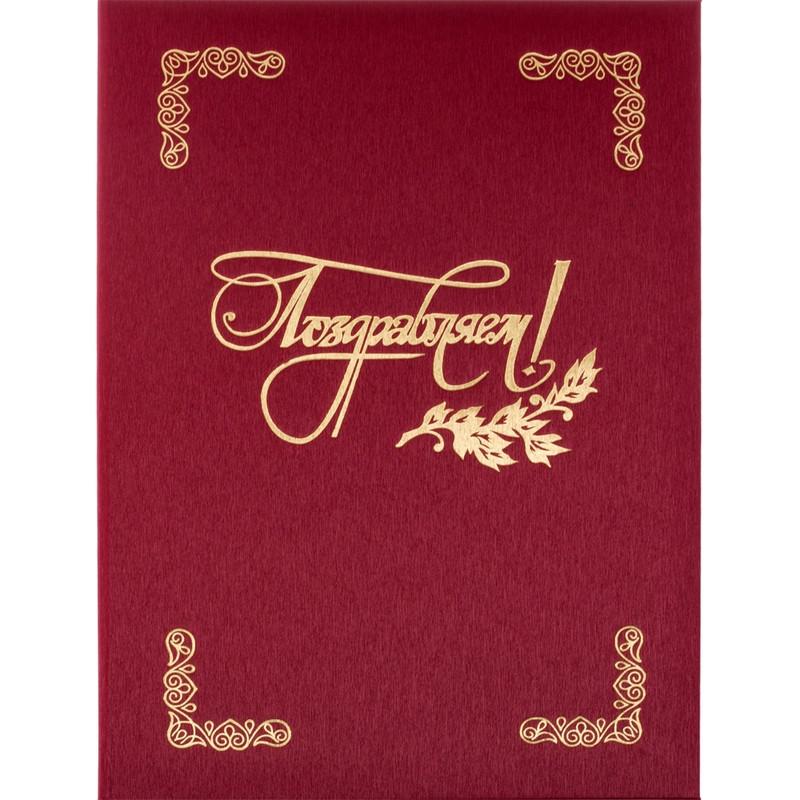 Папка адресная ТВЛ Поздравляем А4 танго бордовая. Адресная папка формата А4 изготовлена из танго (слой ПВХ на бумажной основе). Внутренняя отделка выполнена из балакрона. На обложку методом тиснения золотой фольгой нанесены надпись и орнамент. Внутри предусмотрен ремешок, который надежно фиксирует бумаги. Ручная сборка. На данный товар можно нанести логотип.<br> <br> Адресная папка предназначена для проведения торжественных церемоний, для вручения наград, благодарностей и почетных грамот, для оформления поздравлений и приветственных речей. Благодаря своему дизайну эта папка подойдет для использования на свадьбах, днях рождения, мероприятиях в библиотеках, театрах, школах, университетах и других организациях.