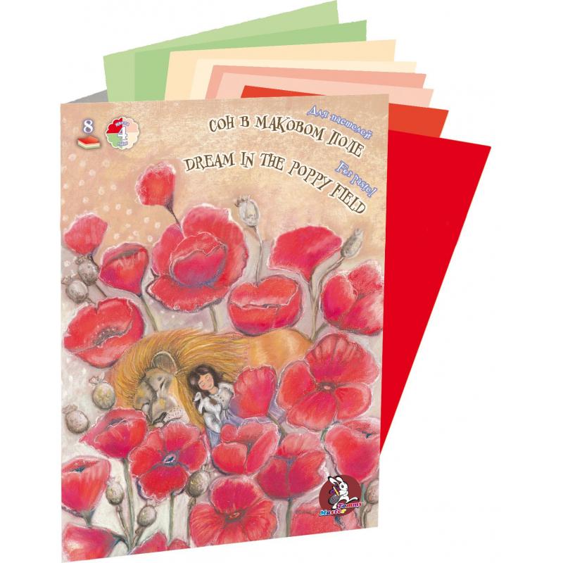 Папка для пастели, угля, сангины Лилия Холдинг Сон в маковом поле А4 8 листов<br><br>Бумага 160 г/кв.м с тиснением.<br>Бумага подходит для различных видов пастельных техник, а также для различных типов изобразительного искусства (пастель, уголь, сепия, сангина, карандаш, даже акварельные краски и гуашь).<br>Качественная структура бумаги гарантирует сохранность работ. При этом многократное наложение друг на друга пастельных материалов не сказывается отрицательно на стабильности красочного слоя.<br>Бумага отлично подходит для дизайнерских работ (скручивание, резка, склеивание, создание карт, декупажа, скрапбукинга).<br>Формат листов: 210×297<br>Количество листов: 8 шт.
