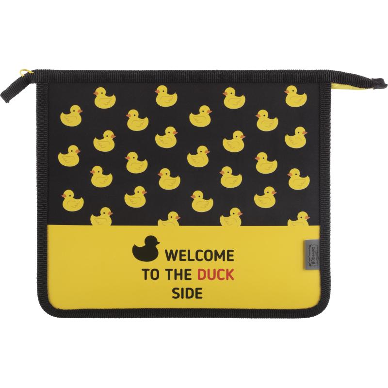 Папка для тетрадей формата А5 предназначена для хранения и транспортировки бумажной продукции. Подходит как для мальчиков, так и для девочек. Папка выполнена из прочного пластика и имеет одно отделение, которое надёжно закрывается на молнию, защищая содержимое от внешнего воздействия. <br>Дизайн папки выполнен в чёрном цвете с изображением уточек. Она вместительна, но не занимает много места и легко помещается в портфель. <br><br>В рамках ребрендинга производится перевод данного артикула с ТМ №1 School на ТМ Комус Класс с сохранением всех потребительских характеристик товара. На переходный период допускается поставка данной продукции в двух вариантах дизайна.