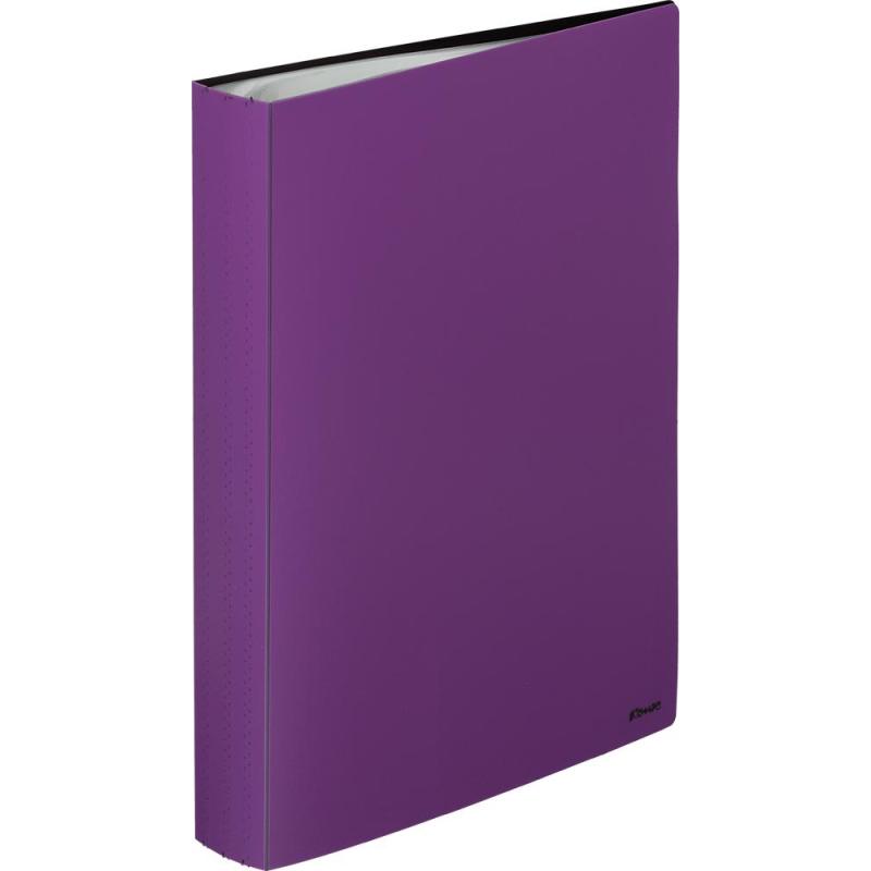 Папка с файлами Комус формата А4 изготовлена из полипропилена толщиной 0,8 мм двух цветов: сиреневого (внешняя поверхность) и черного (внутренняя поверхность). Имеет 60 несъемных прозрачных вкладышей для удобного хранения и демонстрации документов. В каждом из них можно разместить по два листа. Ширина корешка составляет 25 мм. Файловая папка дополнительно оснащена внутренним карманом для компакт-дисков и визитных карточек. Плотность файлов 30 мкм.