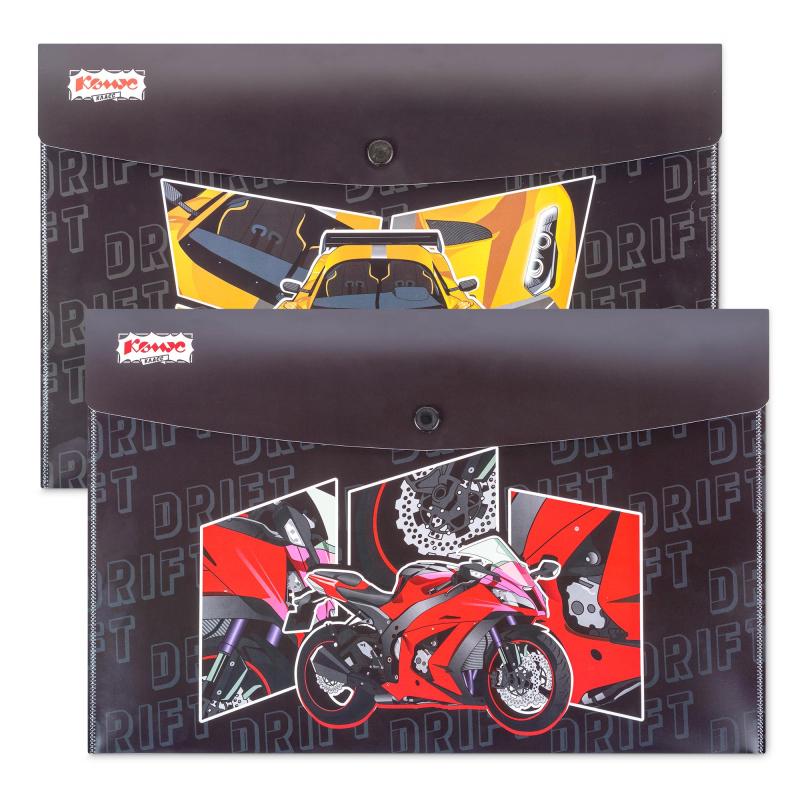 Папка-конверт на кнопке Комус Класс Урбан мото 215×325 200 мкм (2 штуки в упаковке).Стильная деловая папка-конверт на кнопке формат А4. Папку конверт можно использовать для документов и тетрадей формата А4 и А5. Папка также может быть использована для организации и хранения медицинских документов или папка для хранения мелких принадлежностей. Можно использовать для хранения семейных документов. Обложка папки выполнена из качественного полипропилена. Компактный и стильный дизайн папки делает ее универсальным аксессуаром для офиса и учебы. Отлично подойдет в качестве подарка мужчине, женщине на любой праздник. Папку можно брать в дорожные поездки. Красивый канцтовар представлен в нескольких ярких дизайнах. Стильная канцелярская папка отлично подойдет для школы в виде папки для труда, технологии, черчения, офиса, бумаг, школьных тетрадей и рисунков А4. Удобный офисный формат в форме конверта подходит для путешествий, поездок для хранения важных документов: свидетельство о браке, паспорт, снилс, диплом, свидетельство о рождении и деловых документов, детских, многое другое.