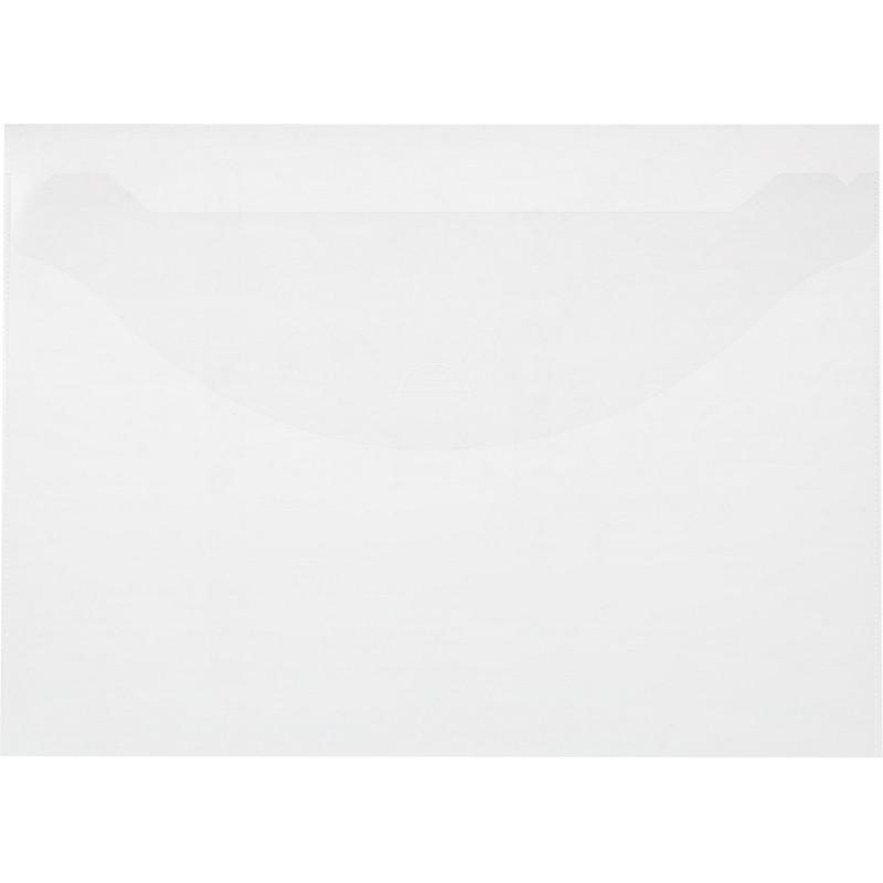 Папка-конверт формата А4 изготовлена из прозрачного полипропилена. Толщина пластика 180 мкм. Вмещает до 100 листов стандартной плотностью бумагу. Удобна для хранения и переноски документов, предотвращает их смятие и загрязнение.