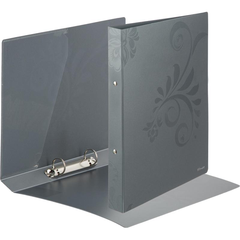 Папка на 2-х кольцах Комус Mountain серая. Папка выполнена из пластика. Формат папки: А4. Снабжена механизмом на двух О-кольцах диаметром 25 мм. Папка вмещает до 300 листов, ширина корешка 32 мм.<br>