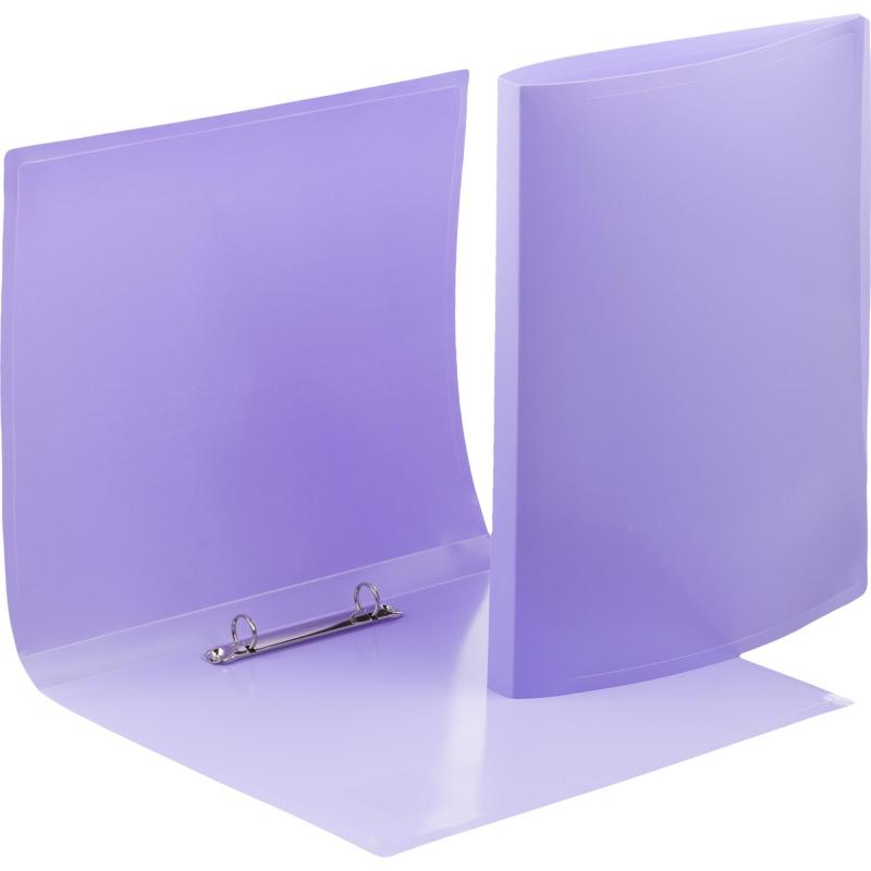 Папка на кольцах изготовлена и полипропилена толщиной 350 мкм. Вмещает до 150 листов бумаги формата А4. Цвет сиреневый. Ширина корешка - 20 мм.