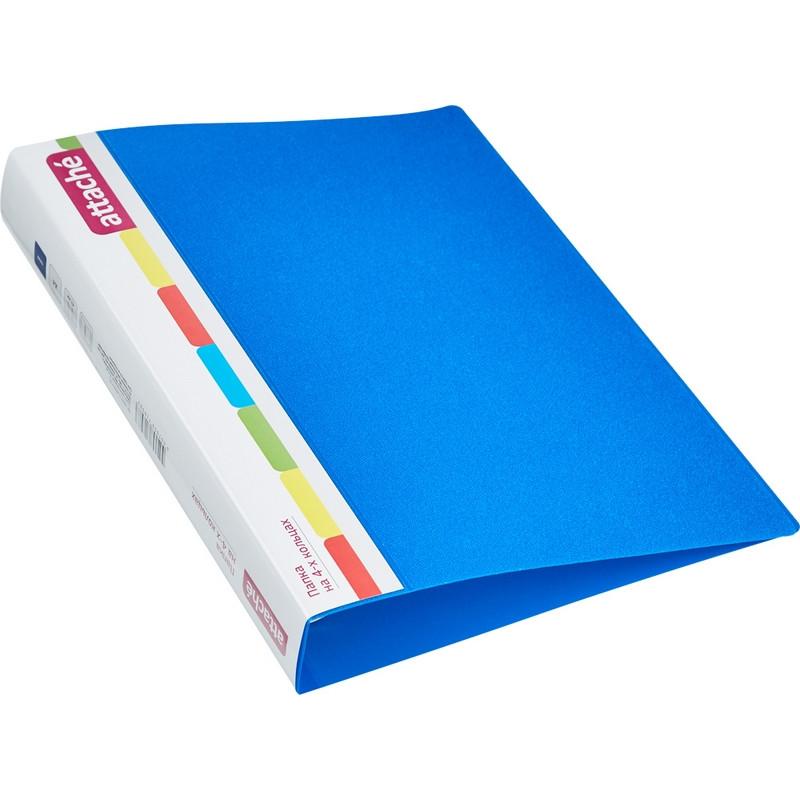 Папка на кольцах рекомендуются как для временного, так и длительного хранения, систематизации, архивирования документов. Такие папки используются в работе офисными сотрудниками различных специальностей, направлений, должностей. Можно использовать для хранения документов дома. Папка на четырех кольцах Attache изготовлена из пластика толщиной 0,7 мм синего цвета. Формат А4. Снабжена механизмом на четырех O-кольцах. Диаметр кольца - 35 мм. На внутренней обложке есть прозрачный карман для документов. Ширина корешка составляет 42 мм. На корешке есть наварной карман размером 9,5x30 см. Папка на кольцах вмещает до 250 листов стандартной плотности.