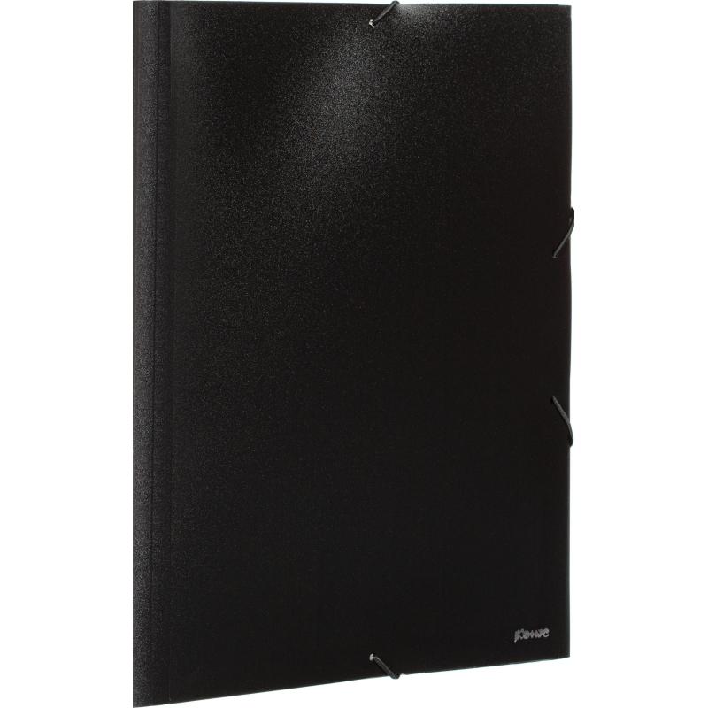 Папка на двух резинках «Комус» формата А4 выполнена из прочного полипропилена, толщиной 0,45 мм, черного цвета. Резинки надежно удерживают папку в закрытом состоянии. Вмещает до 300 листов стандартной плотности. Внутри есть карман для компакт-дисков и визитных карточек.