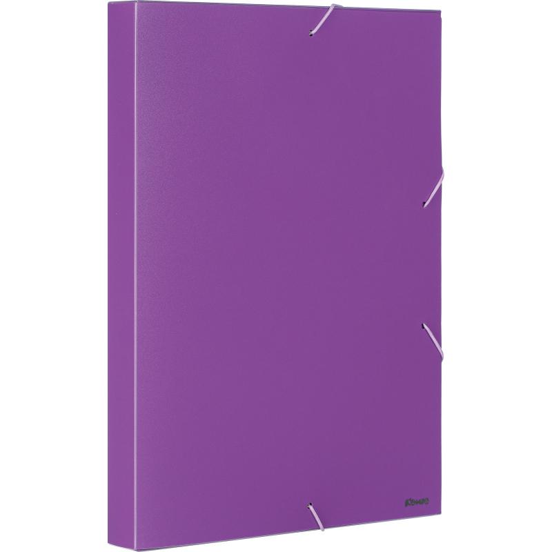 Папка-короб на резинках Комус изготовлена из высококачественного полипропилена, толщиной 0,8 мм. Формат А4. Двухцветный эффект: сиреневая снаружи, черная — внутри. Ширина корешка — 30 мм. Вместимость до 300 листов. Размер папки — 245×335 мм.