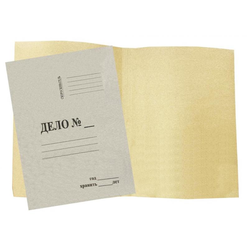 Папка-обложка Дело &8470; формата А4 изготовлена из немелованного картона. Размер папки 220×310 мм, корешок 20 мм в 3 биговки. Белизна картона 45-55%. Без скоросшивателя и завязок. На лицевой стороне есть поля для подписывания. Поставляется по 100 штук в упаковке. Картон — экологически чистый и пригодный для переработки материал.