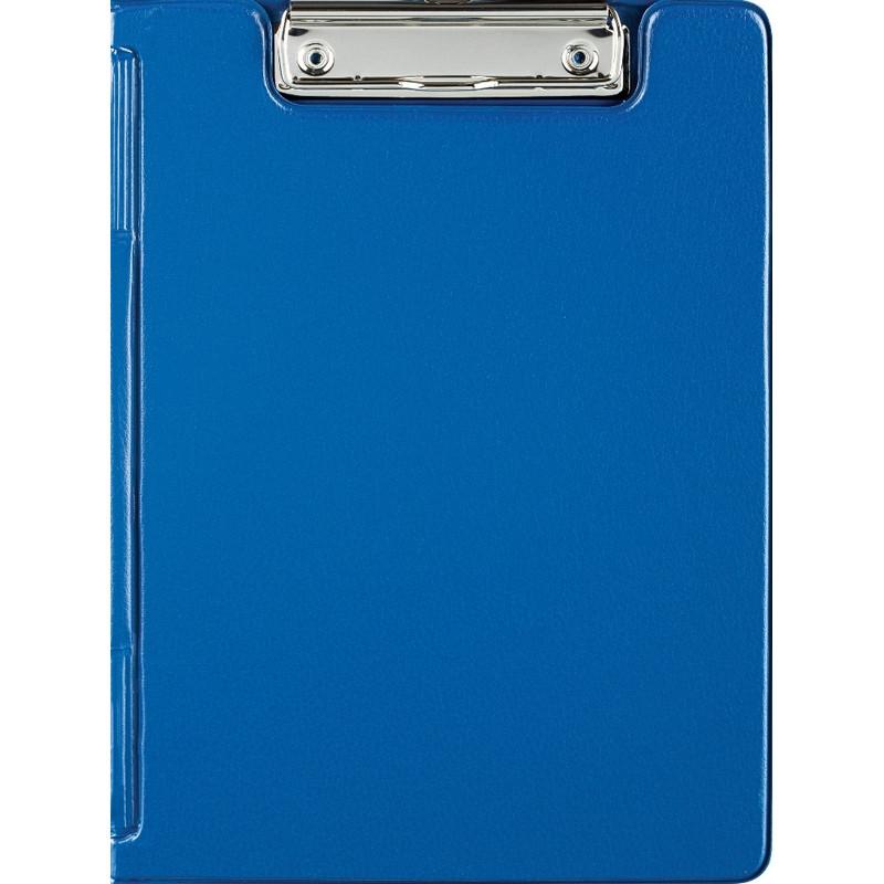 Папка-планшет</nobr> изготовлена из плотного картона, обтянута ПВХ. Формат А5 (185×255 мм). Цвет — синий. Планшет имеет прозрачный карман на внутренней стороне верхней створки.