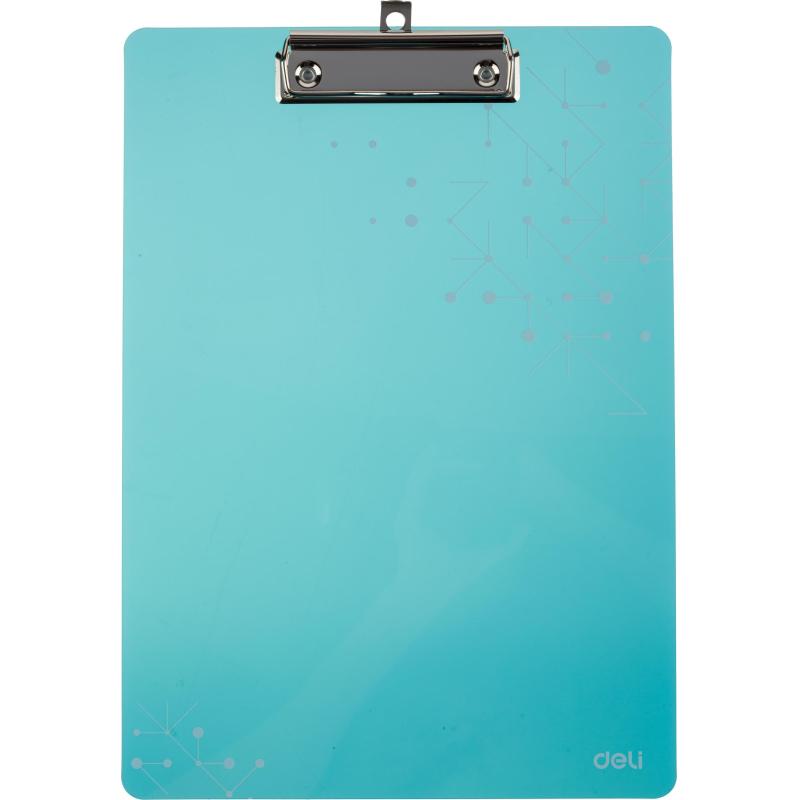 Прочная и стильная <nobr>папка-планшет</nobr> Deli с металлическим с зажимом. Папка вертикальная формата А4 изготовлена из прочного полипропилена толщиной 1,5 мм, устойчива к царапинам и имеет гладкую поверхность. Используется для работы со счетами, накладными и другими документами. Незаменима при работе на складе, в магазине, при участии в конференциях, выставках и других публичных выступлениях. Металлический зажим для фиксации документов позволяет делать записи на весу. Фиксирует до 50 листов. Легкий и портативный планшет удобно носить в руках, легко помещается в сумке, портфеле, <nobr>бизнес-кейсе</nobr>.<BR>Размер: 220×310 мм<BR>Цвет: голубой<BR>Ориентация: вертикальная