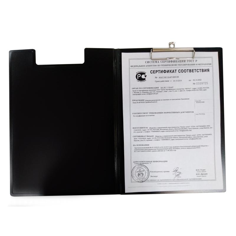 <p><nobr>Папка-планшет</nobr> «Комус» формата А4 (размером 230×320 мм) с откидной крышкой изготовлена из полипропилена черного цвета. Толщина пластика — 1,5 мм. Позволяет комфортно работать с документами на весу. Металлический прижим надежно удерживает листы и файлы.</p>