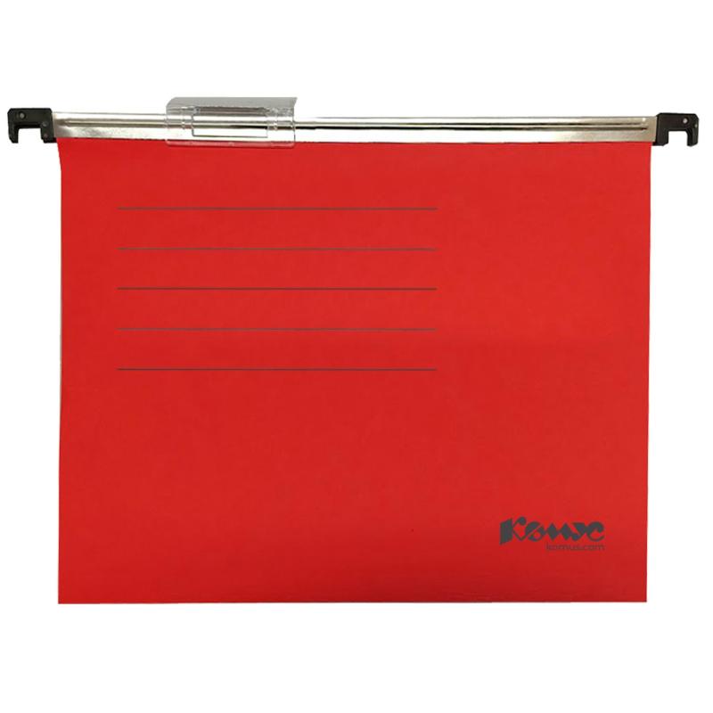 Подвесная папка Комус Plus предназначена для удобного хранения и систематизации документов формата А4. В комплекте 10 подвесных папок V-образной формы с пластиковыми рейками и крючками, 10 табуляторов с бумажными вставками для маркировки. Подвесная регистратура изготовлена из прочного картона плотностью 220 г/кв.м красного цвета. Размер с крючками — 350×250 мм, без крючков — 300×250 мм. Вместимость одной подвесной папки — до 100 листов А4, плотностью 80 гр. Подвесная регистратура размещается в специальной тележке, подставке или боксе.
