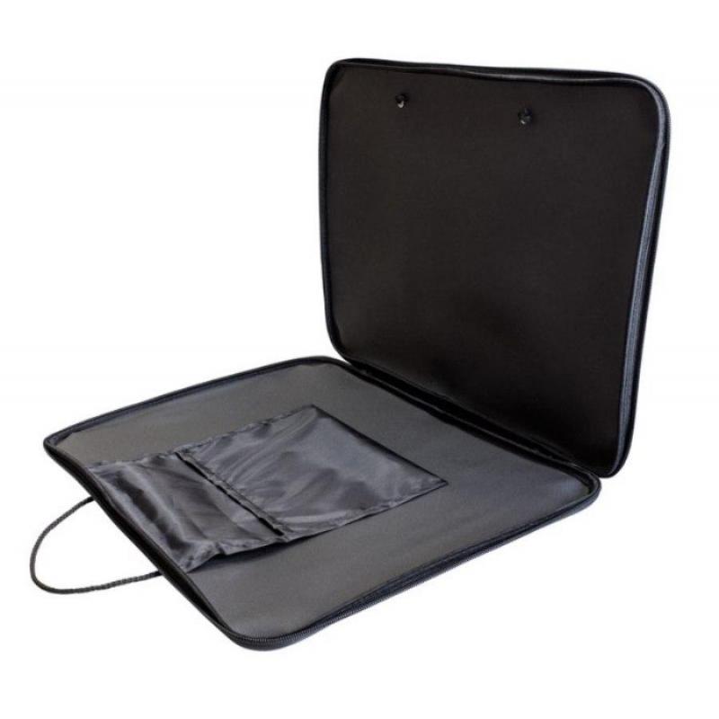 <p>Папка-портфель формата А3, размер 450×330×15 мм, изготовлена из высококачественного прочного нейлона, предназначена для переноски и хранения документов. Оснащена молнией. Папка имеет две ручки в виде шнуров. Цвет — черный. Есть внутренний карман, предназначенный для различных мелочей.</p>