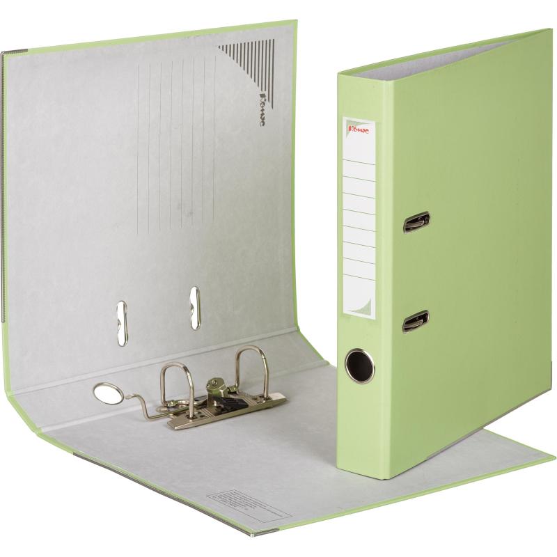 Папка-регистратор ’Комус’ из коллекции ’Экономи’ подходит для хранения большого количества документов формата А4 в офисе, государственном учреждении и дома. Папка изготовлена из плотного картона, покрытого бумвинилом цвета лайм. Арочный механизм произведен в Чехии. Нижние края защищены от повреждений металлическим кантом. На корешке шириной 50 мм есть карман со сменной этикеткой и кольцо для захвата. Папка-регистратор вмещает до 350 листов стандартной плотности.