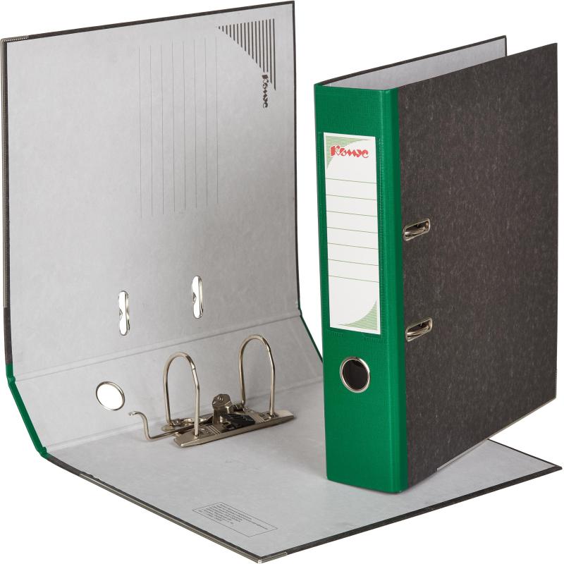 <nobr>Папка-регистратор</nobr> Комус с арочным механизмом формата А4 изготовлена из плотного картона, покрытого фактурной бумагой под мрамор. Нижние края защищены металлическим кантом. Корешок зеленого цвета, ширина — 75 мм. Специальные прорези на крышке не дают папке открываться при большом количестве вложенных документов. На корешок наклеена этикетка, есть кольцо для удобного захвата. Арочный механизм произведен в Чехии. <nobr>Папка-регистратор</nobr> Комус вмещает до 480 листов стандартной плотности.<br><br> <nobr>Папка-регистратор</nobr> незаменима в офисах, государственных учреждениях и дома. Она обеспечит порядок и удобный доступ к необходимым документам.