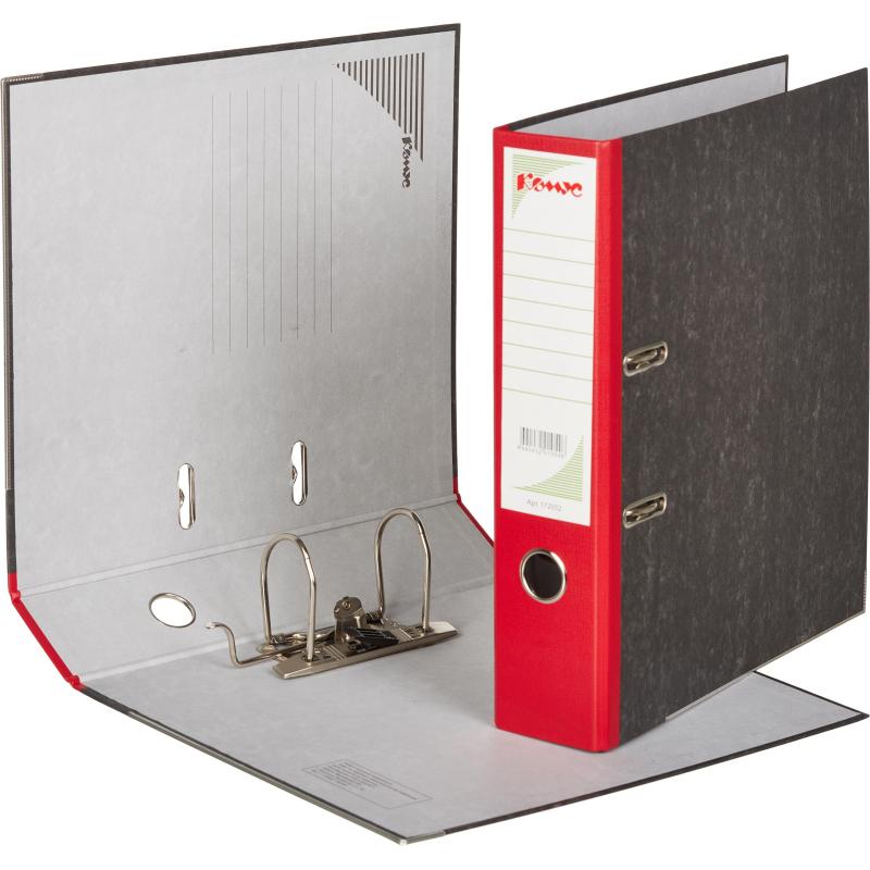 Папка-регистратор ’Комус’ с арочным механизмом формата А4 изготовлена из плотного картона, покрытого фактурной бумагой под мрамор, произведенной в Великобритании. Нижние края защищены металлическим кантом. Корешок красного цвета, ширина — 75 мм. Специальные прорези на крышке не дают папке открываться при большом количестве вложенных документов. На корешок наклеена этикетка, есть кольцо для удобного захвата. Арочный механизм произведен в Чехии. Папка-регистратор ’Комус’ вмещает до 480 листов стандартной плотности.<br> <br> Папка-регистратор незаменима в офисах, государственных учреждениях и дома. Она обеспечит порядок и удобный доступ к необходимым документам.