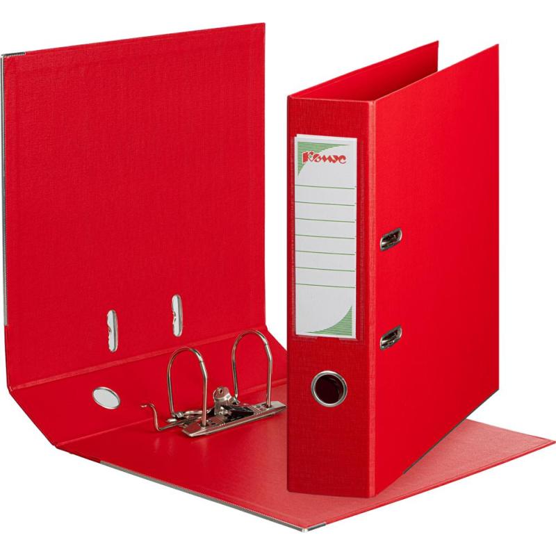 Папка-регистратор ’Комус’ из коллекции ’Стандарт’ с арочным механизмом изготовлена из картона, с внешней и внутренней стороны оклеена бумвинилом красного цвета. Формат А4. Арочный механизм произведен в Чехии. Нижние края защищены от повреждений металлическим кантом. Благодаря прорезям для колец на внешней крышке папка остается закрытой даже при большом количестве бумаг. На корешке шириной 75 мм есть карман со сменной этикеткой и кольцо для захвата. Папка-регистратор ’Комус’ вмещает до 480 листов стандартной плотности.<br> <br> Папка-регистратор незаменима в офисах, государственных учреждениях и дома. Она обеспечит порядок и удобный доступ к необходимым документам.