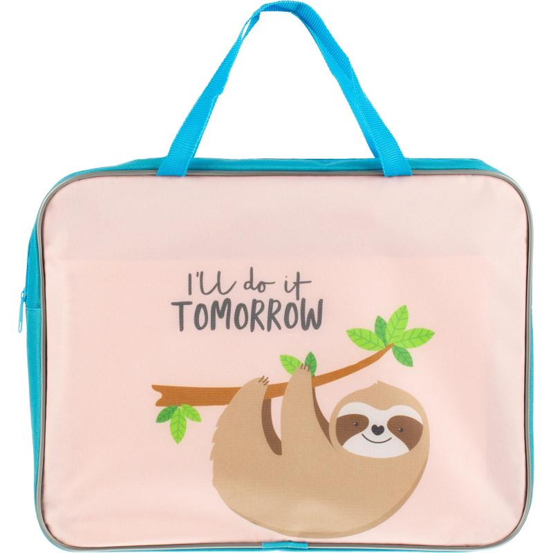 Папка для тетрадей Забавный ленивец А4 с 1 отделением на молнии с ручками<br><br>Папка школьника формата А4 выполнена из полиэстера и закрывается на молнию. Она предназначена для хранения тетрадей и других учебных принадлежностей, внутри предусмотрено одно отделение.<br><br>Габариты папки составляют 33.5 см в длину, 26 см в высоту и 5 см в глубину. Изделие имеет удобные ручки и твёрдое дно, что облегчает переноску и помогает сохранять форму даже при полной загрузке. Разноцветный дизайн с изображением животных делает папку привлекательной и подходит как мальчикам, так и девочкам.<br><br>Изготовлено в России.