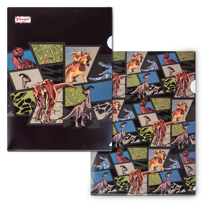Папка-уголок Комус Класс Дино Комикс пластиковая 200 мкм (2 штуки в упаковке).<br>Папка-уголок для документов формата А4 — обязательный канцелярский предмет офисного сотрудника, для студента, для школьника. Школьная папка уголок имеет формат А4 и предназначена для хранения тетрадок, учебных и канцелярских принадлежностей. Папки-уголки изготовлены из полипропилена плотностью 200 мкм , 2 штуки в упаковке. Вмещает до 25 листов. Позволяет удобно хранить и переносить документы, предотвращает их смятие и загрязнение. Папка имеет выемку для удобного извлечения листов.<br>Пригодится школьникам младших, средних и старших классов, в том числе и первоклассникам. Ваш ребенок сможет положить все самые необходимые документы, тетрадки и канцелярские принадлежности, папка уголок защитит все бумаги от сминания, порчи, загрязнений при транспортировке, в поездках и просто при хранении. Папка-уголок найдет свое применение и в университете, и в офисе, и даже дома.